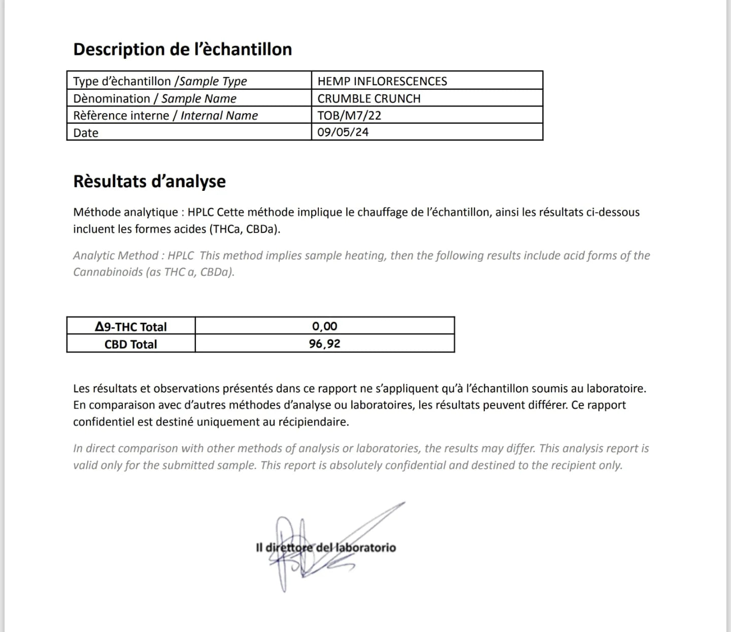 Un hash CBD de primera calidad, reconocido por su pureza y potencia excepcionales. Elaborado mediante un proceso artesanal de dry sift con triple filtrado, alcanza una concentración superior al 40% de CBD, conservando el aroma característico y profundo de la genética Amnesia. 🌿